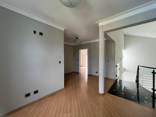 No piso superior, além das duas suítes, possui uma sala de TV é mais um cômodo.